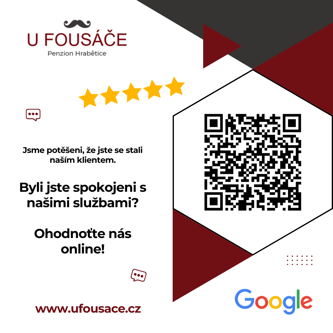 Těšíme se, že vás v ubytování U Fousáče přivítáme a poskytneme vám nezapomenutelný pobyt plný zábavy, relaxace a pohody. Vaše spokojenost je naší prioritou, a proto se budeme s láskou starat o každý detail vašeho pobytu.