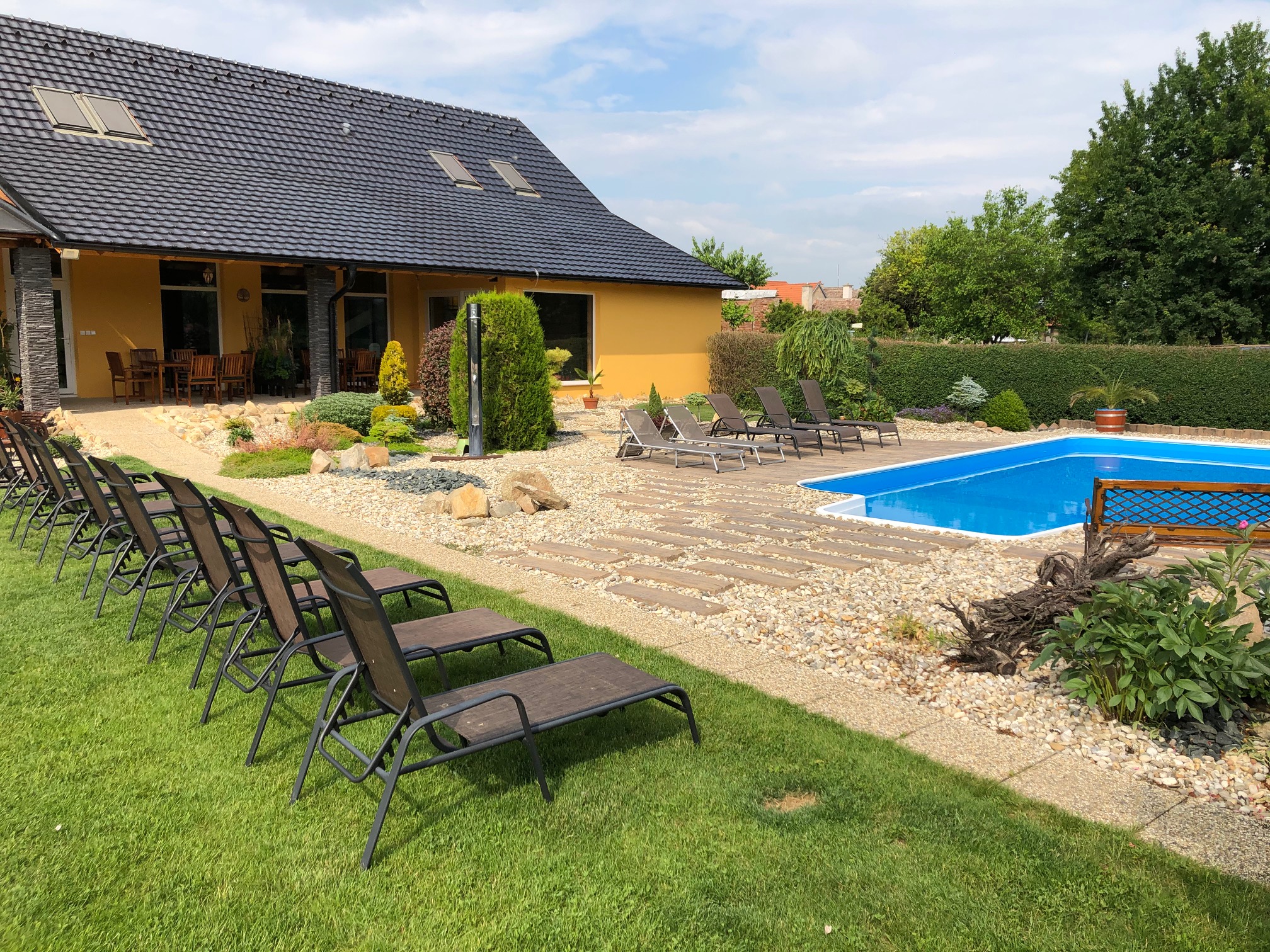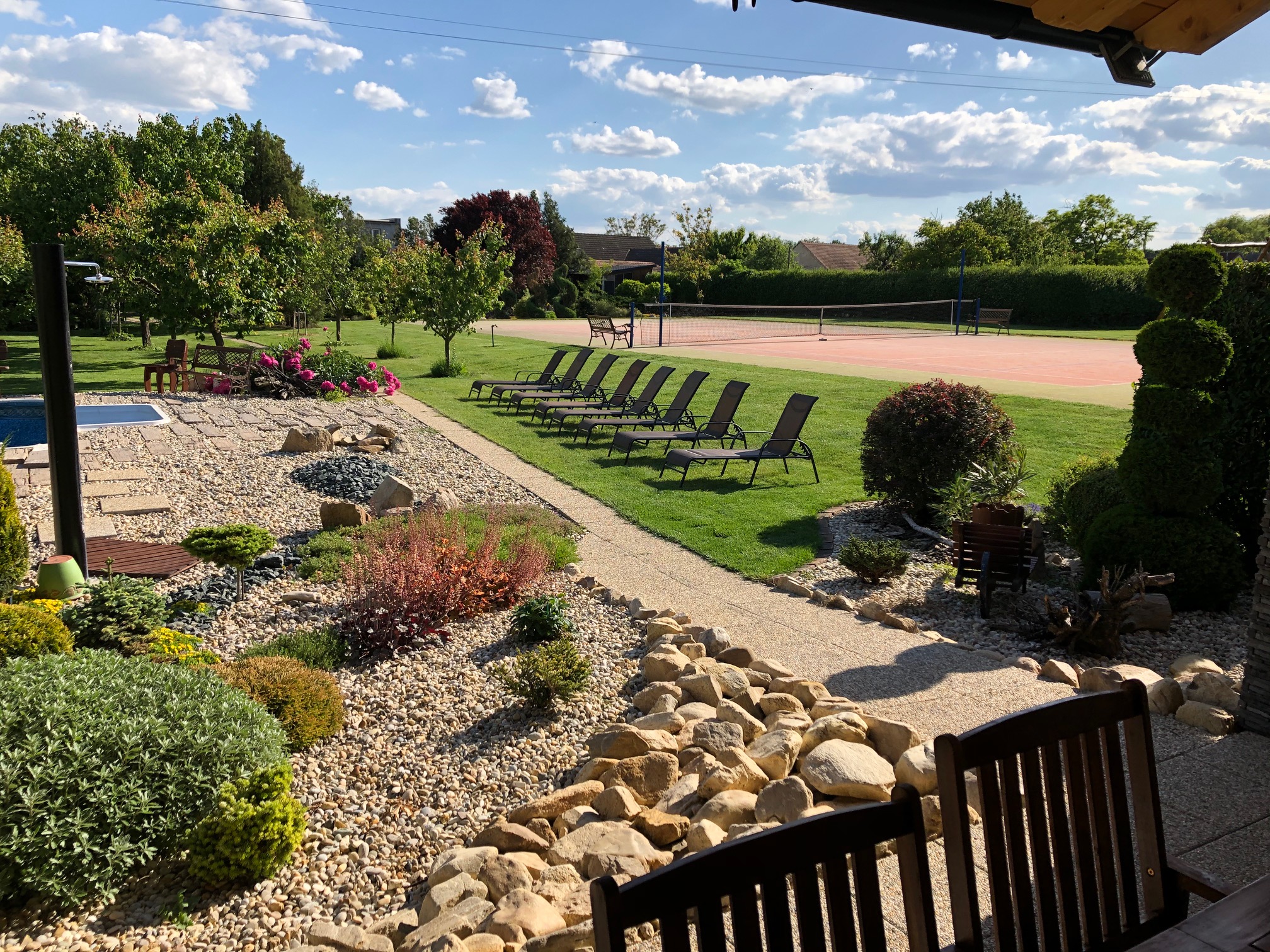 Vychutnat si u nás můžete slunné dny u venkovního bazénu s relaxační zónou, zahrát si tenis na našem kurtu, který se dá proměnit i ve hřiště pro volejbalové nadšence. Grilujte a odpočívejte na našem venkovním posezení, zatímco vaše děti skotačí na houpačkách a prolézačkách.