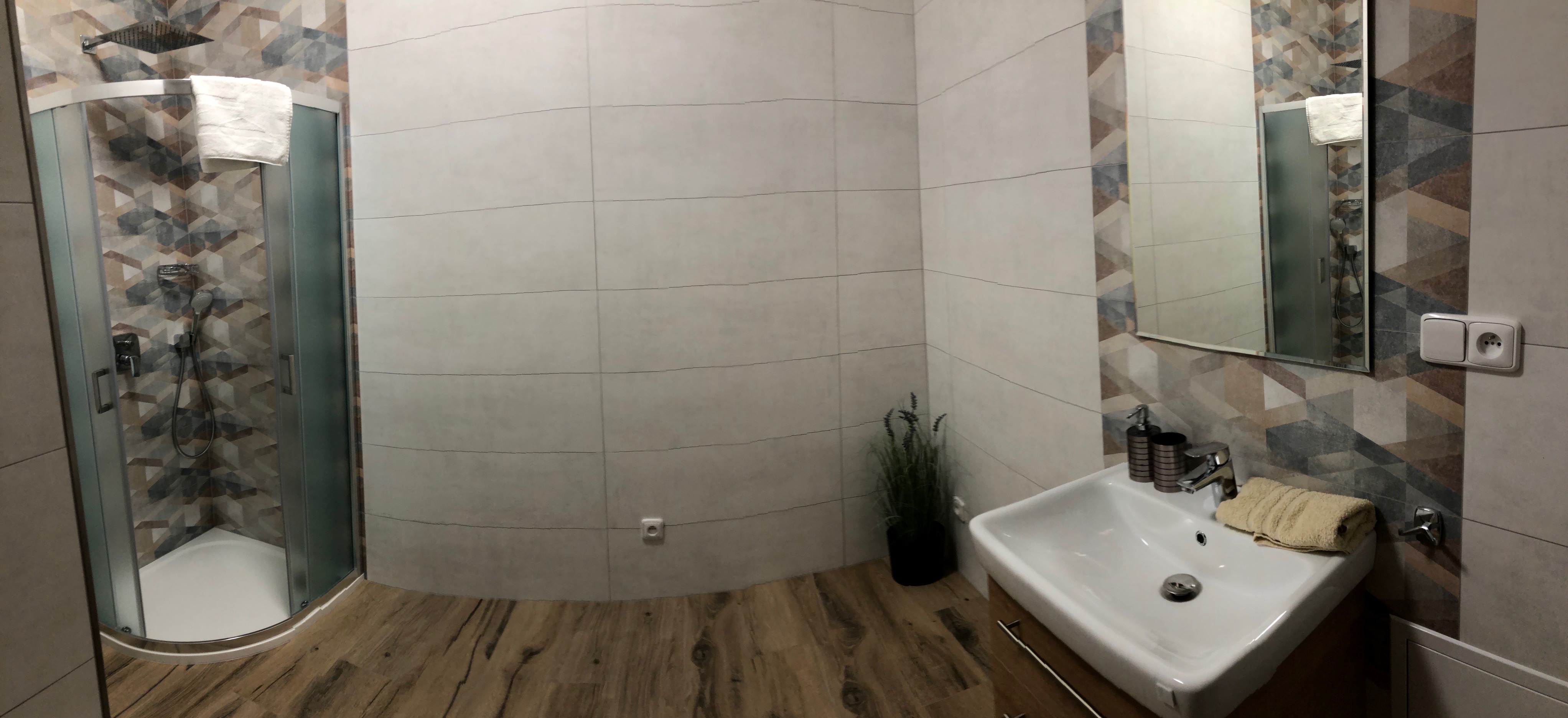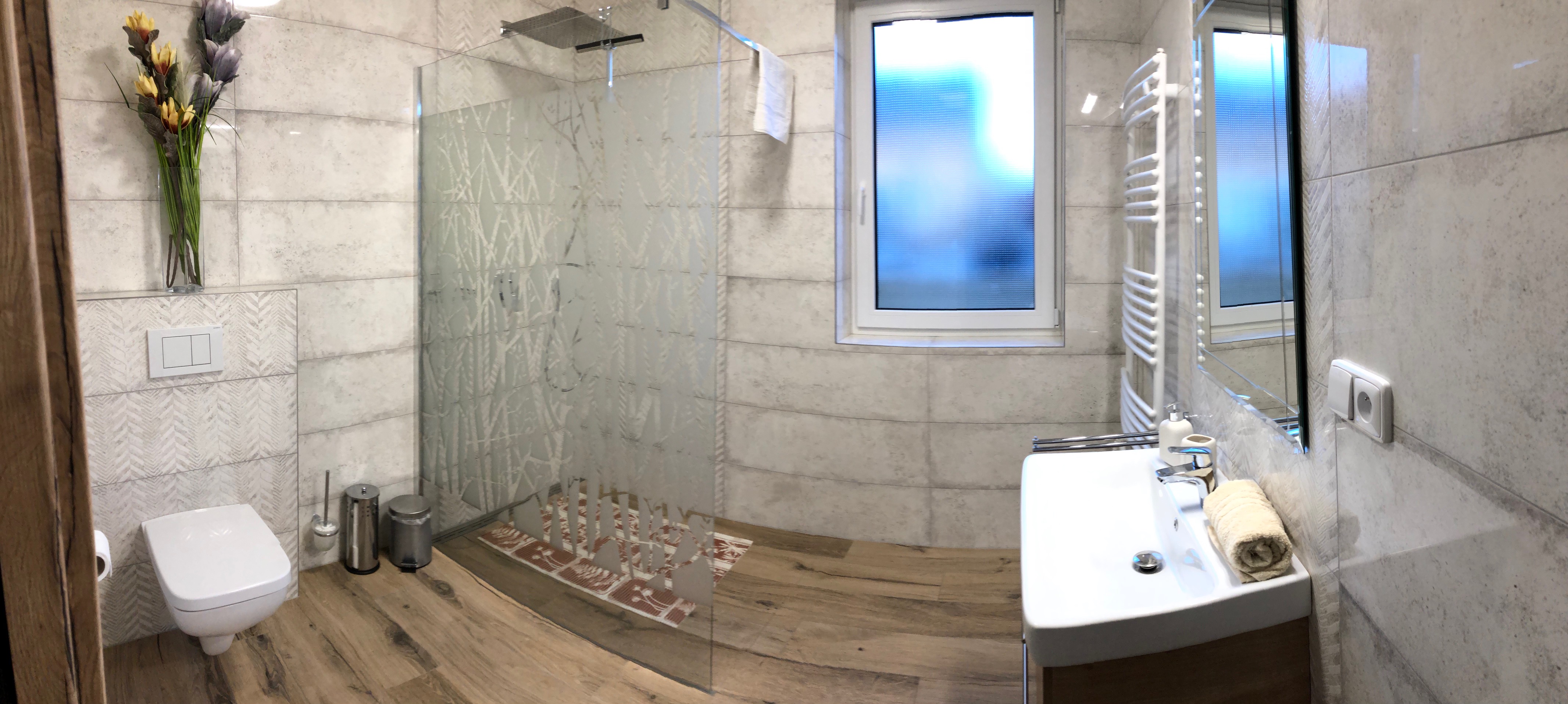 Dvě koupelny se sprchovým koutem, umyvadlem a WC, k dispozici je vysoušeč vlasů.
