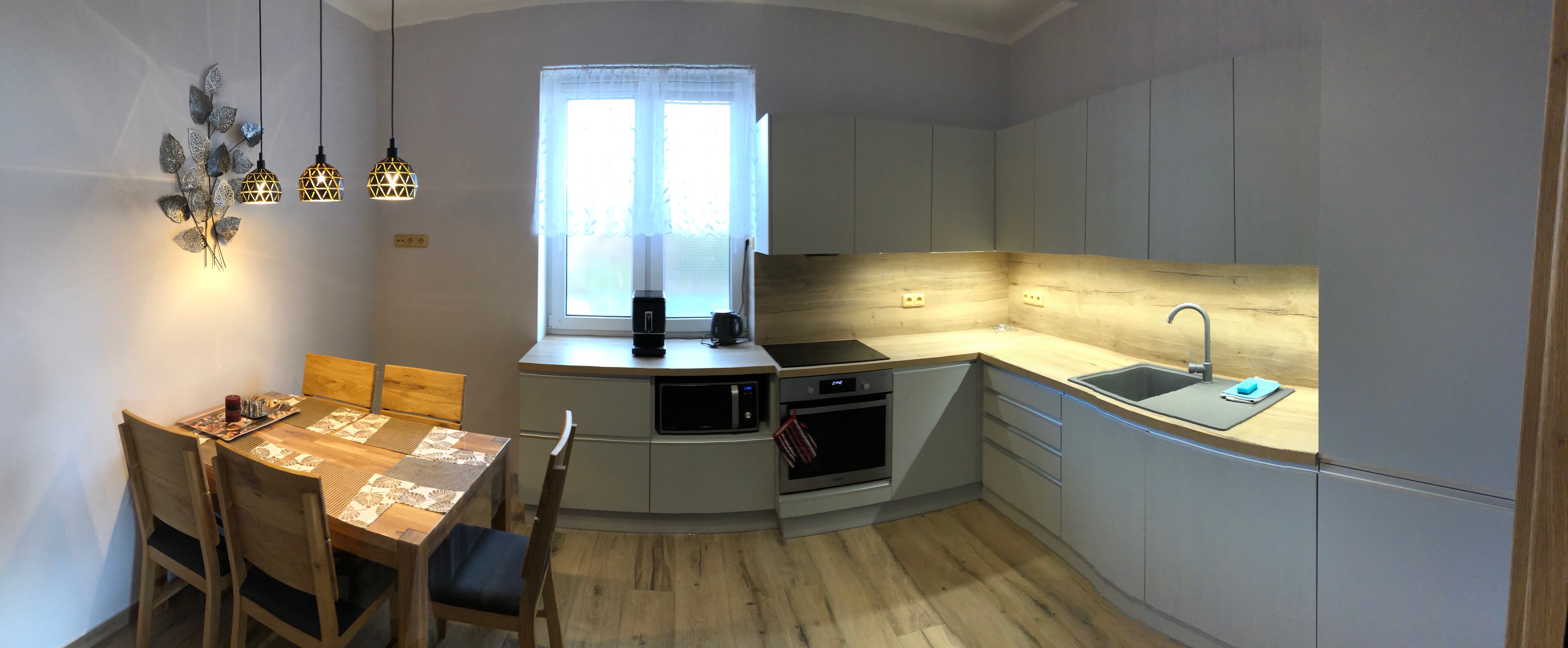 Kompletně vybavená kuchyň - jídelní a nápojový servis, hrnce, pánve, sklokeramická varná deska, el.trouba, myčka nádobí, varná konvice, sendvičovač, kávovar presso , topinkovač, lednice, mikrovlnná trouba.